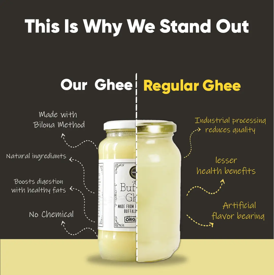 - Buffalo Ghee: Rich, creamy, ideal for those wanting more energy and depth of flavor.