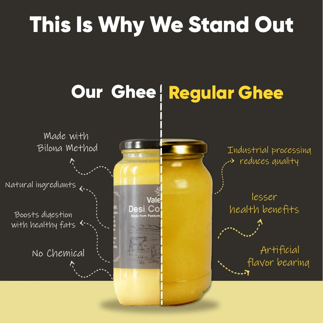 - Slow-cooking the butter over a low flame This preserves essential fatty acids, vitamins, and the grainy texture of pure ghee.