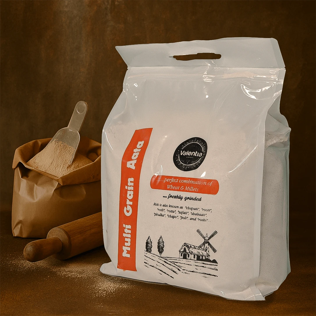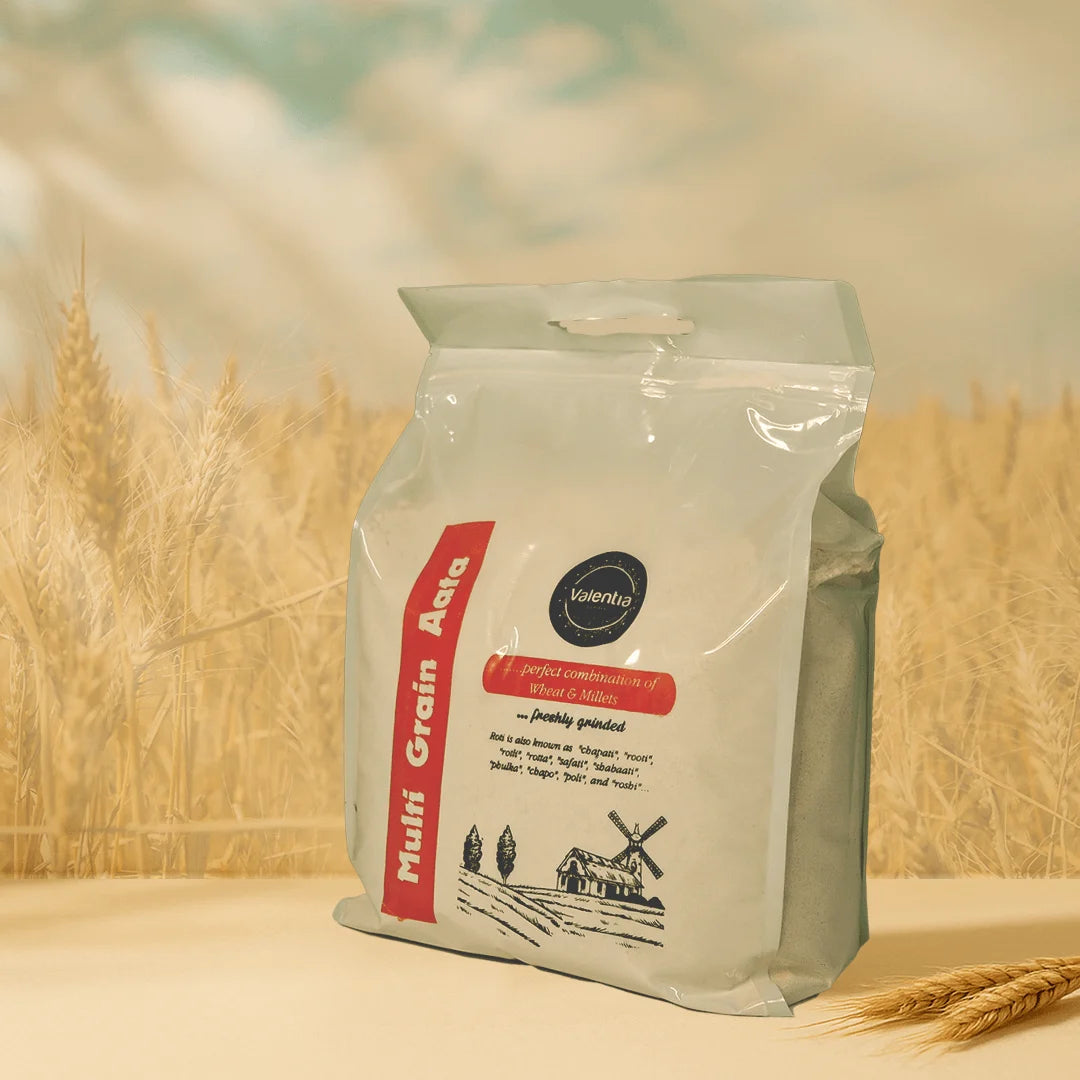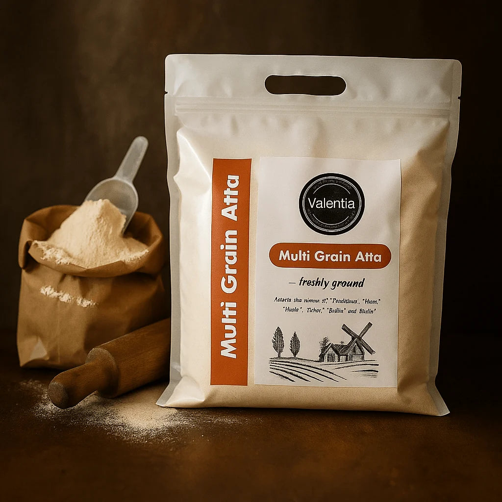 Valentia Multi-Grain Aata is a blend of wheat, ragi, bajra, jowar, and other millet superfoods. It offers high fiber, complex carbs, and a low glycemic index—making it ideal for people seeking balanced nutrition.
